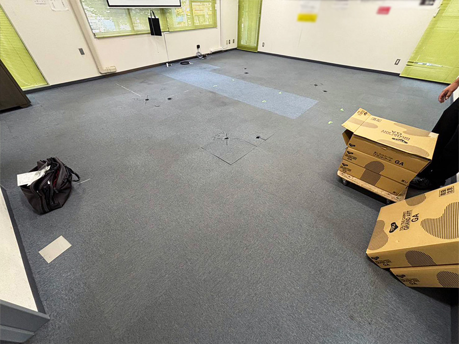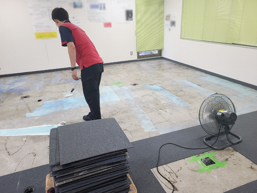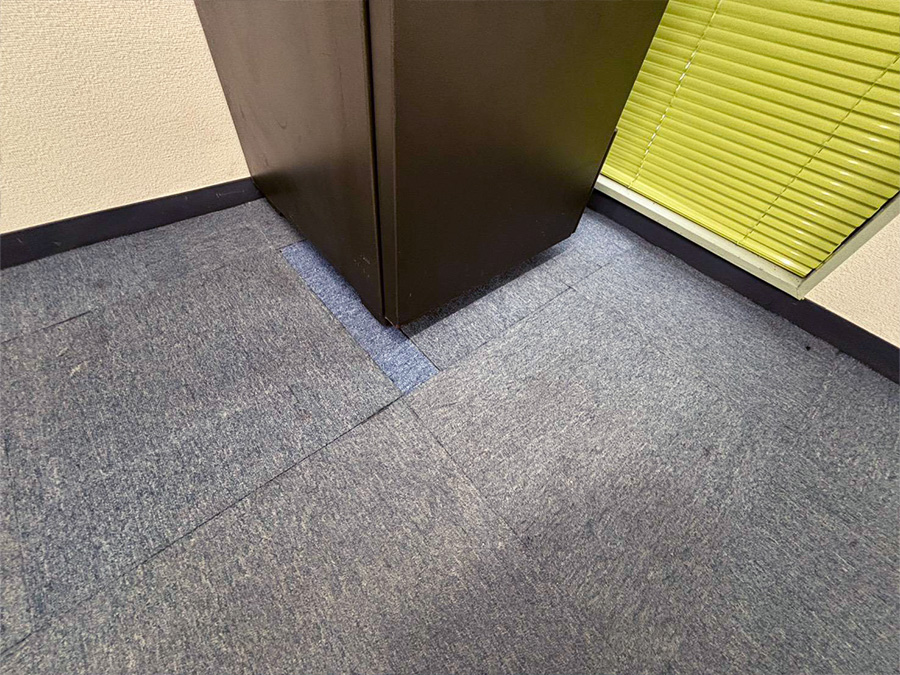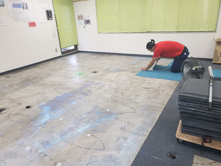 No.637 タイルカーペットの貼替施工 2025年10月23日 最終更新日時 : 2025年10月24日 miyashita 施工前 施工後 会社名・企業名 非公開 (埼玉県所沢市) 業種・業界 電気工事業 依頼内容 一部屋カーペットが汚れてきたので貼替えをお願いしたい 弊社の施工事例を見て、気になった柄で貼り替えをしたい 施工内容 お客様の方でおおまかな商品選定をして頂いており、ご希望の商品で御見積書を提出。 施工費用や内容にご納得頂いた後、タイルカラーの打ち合わせを行いました。 3種類の候補から、部屋の写真を頂いて貼替えたイメージ図をもとにブラインドや壁紙の色に合わせて色を決定していただき、施工しました。 使用した商品名 東リ タイルカーペット GA-100シリーズ GA-100W シルキーラインII 施工場所会議室地域埼玉県施工種類床施工タグタイルカーペット担当者三鷹 清水カラーブルー人数規模1人~10人 関連施工事例倉庫を快適な執務室へリニューアルした事例 2025年9月18日 原状回復を見据えた両面テープ施工|おしゃれなオフィス空間へ 2025年8月29日 デザイン性と機能性を両立させる床施工②応接室,廊下,スロープ 2025年8月2日 デザイン性と機能性を両立させる床施工①会議室 2025年8月2日 社員寮の床貼替工事②_階段、廊下、共用スペース 2025年8月1日 社員寮の床貼替工事①_キッチン、休憩スペース 2025年7月31日 サービス パーティション施工 レイアウト自由!会議室・応接室・休憩室などにパーティション施工お任せください。 タイルカーペット・床施工 床工事からデザインまで一括対応ワンストップ!すべておまかせください。 引越し・移転・レイアウト オフィス専門に特化したプロ集団が事務所の移転・引っ越し作業を行います。 レンタルサービス デスクやチェアはもちろん、会議テーブル、パイプ椅子、アクセサリー等もレンタル可能です。 商品品質について オフィスレスキュー119Happyのリユース品はすべてメンテナンス・清掃済み。品質に自信があります! オフィスリース オフィスの準備はリースで初期負担を軽減!施工に関わる費用も対象になります。お気軽にお問い合わせください。
