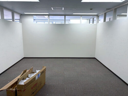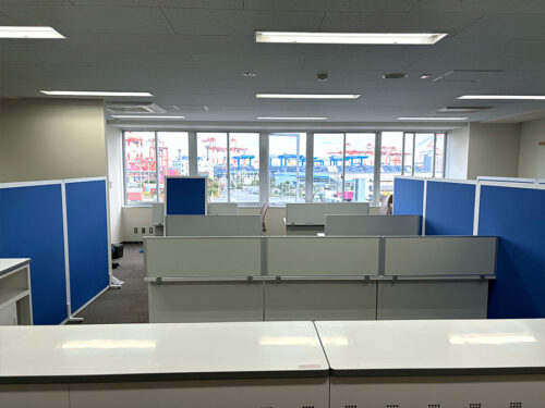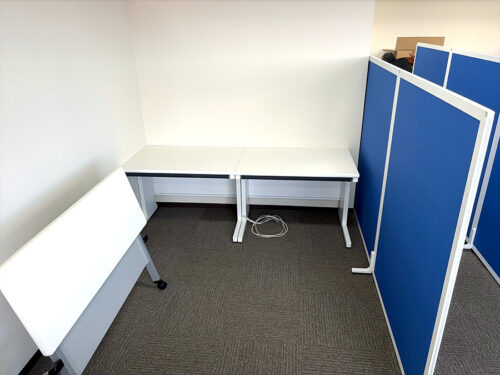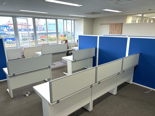 さらに、デスク周りにはローパーティションを設置。視線を遮りつつ、動線が確保できるレイアウトとしています。