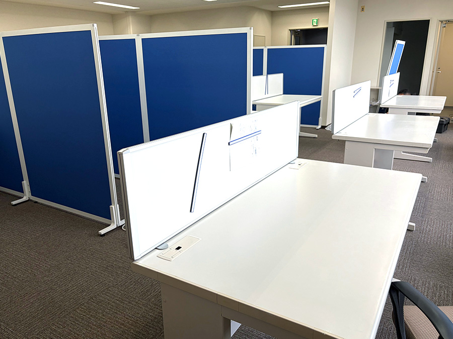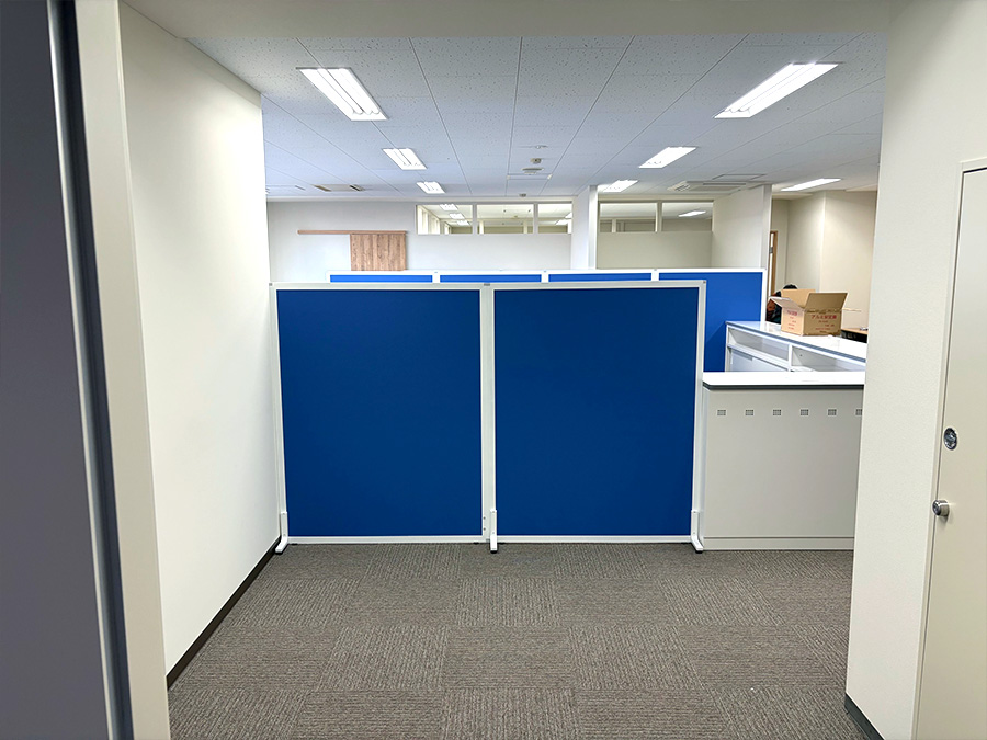 さらに、デスク周りにはローパーティションを設置。視線を遮りつつ、動線が確保できるレイアウトとしています。