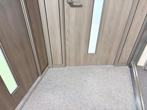 ・エントランスのランマ部分に関して、照明とエアコンが干渉する為、ロータイプ自立型間仕切にし、柱など無くスッキリ仕上げ、スイッチ位置の都合上、直線だけでなく角度を付けたドアパネル部分など拘りました。