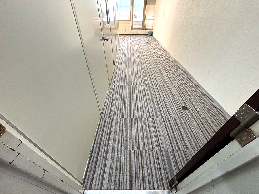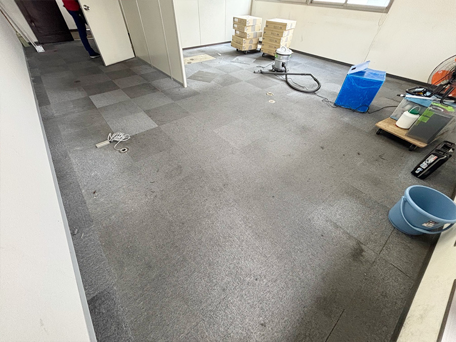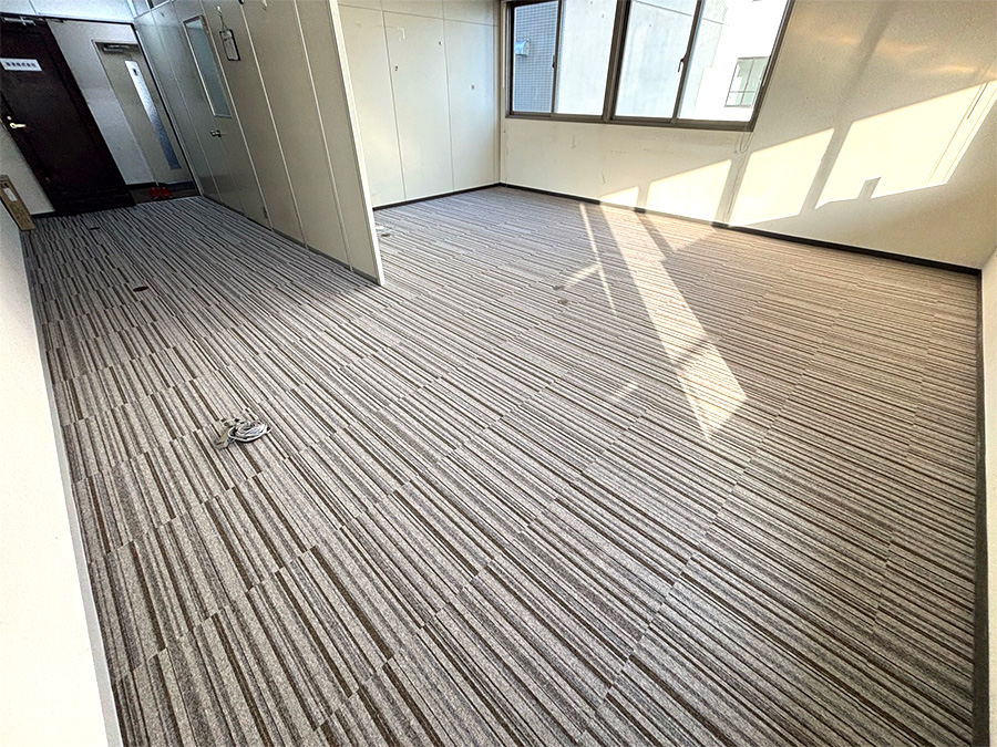 No.651 新規事務所開設にともなうタイルカーペットの貼替施工 2026年3月12日 最終更新日時 : 2026年3月12日 miyashita 施工前 施工後 会社名・企業名 非公開 (東京都大田区) 業種・業界 食品業 依頼内容 新規事務所開設にあたり、既存タイルカーペットを剥がして新しくタイルカーペットを敷きたい。 施工内容 お客様のご要望により、新品商品で対応いたしました。 カラーはカタログを用いて複数色ご提案させていただき、 最終的にはストライプのモダンテイストなカラーを採用することとなりました。 既存のタイルカーペットをすべて撤去し、 新品タイルカーペットを手配のうえ、張替作業を実施いたしました。 使用した商品名 タイルカーペット 東リ GA4505R 施工場所執務室会議室地域東京都タグタイルカーペット担当者川崎店 土田カラーブラウン人数規模1人~10人 サービス パーティション施工 レイアウト自由!会議室・応接室・休憩室などにパーティション施工お任せください。 タイルカーペット・床施工 床工事からデザインまで一括対応ワンストップ!すべておまかせください。 引越し・移転・レイアウト オフィス専門に特化したプロ集団が事務所の移転・引っ越し作業を行います。 レンタルサービス デスクやチェアはもちろん、会議テーブル、パイプ椅子、アクセサリー等もレンタル可能です。 商品品質について オフィスレスキュー119Happyのリユース品はすべてメンテナンス・清掃済み。品質に自信があります! オフィスリース オフィスの準備はリースで初期負担を軽減!施工に関わる費用も対象になります。お気軽にお問い合わせください。