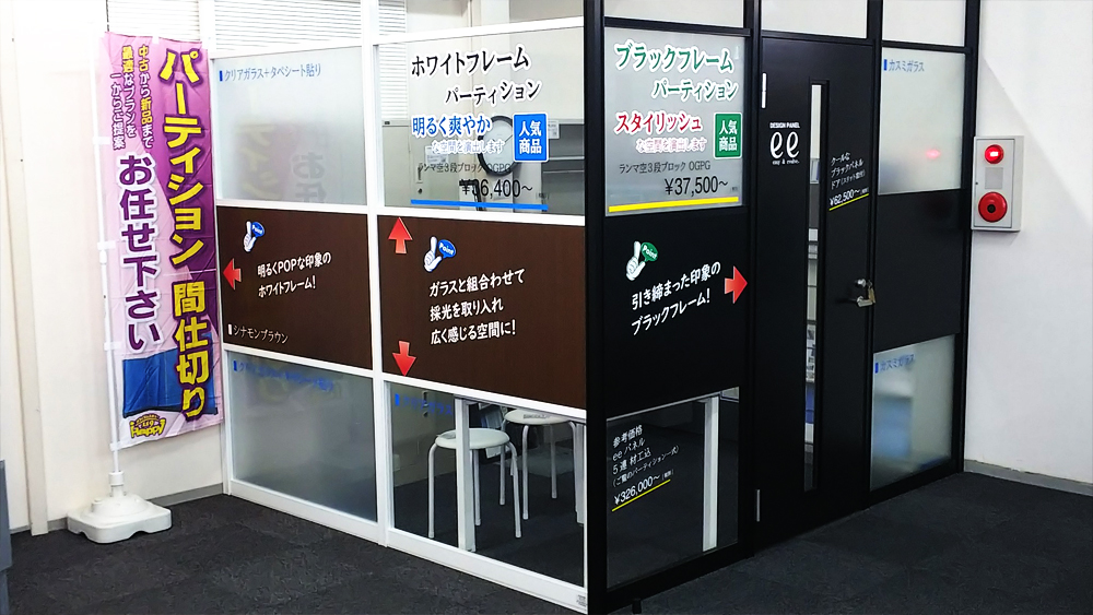 川口店にご来店頂ければ実物のアルミパーテーションを見て触れて体感頂くことが可能です! また無料で出張レイアウト作成も承っておりますので図面を用いてお客様の空間作りをお手伝い致します! どうぞお気軽にご来店下さい。